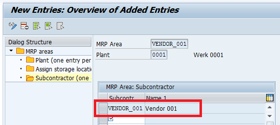 Figure 2, double-click the Subcontractor (one entry per MRP area) folder to display the screen in which you assign the vendor to your MRP area (