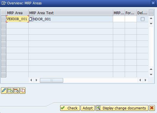 Figure 5, insert the desired MRP area and click the Check button to change the planning parameters at the MRP area level in the next screen (
