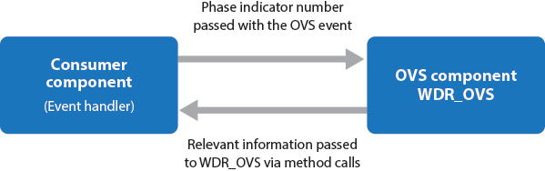 In specific instances, the OVS component may need information from the Web Dynpro component using it. For this purpose, the OVS event is generated by the OVS component. The PHASE_INDICATOR value denotes the information needed.