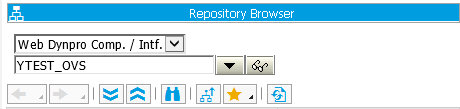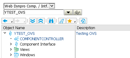 1. Create a Web Dynpro component with the name YTEST_OVS. Execute transaction code SE80. In the screen the system opens, enter the name YTEST_OVS and click the display icon (the glasses), as shown in Figure 4. Make sure to choose Web Dynpro Comp./Intf from the drop-down menu.