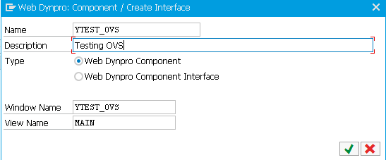 2. Select Yes and press Enter. In the next screen enter the description, select the Web Dynpro component type, and press Enter as shown in Figure 6. The other fields are populated automatically.