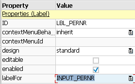 For the LBL_PERNR properties, select INPUT_PERNR from the dropdown for LabelFor and then enter INPUT_PERNR in the text field, as shown in Figure 16.