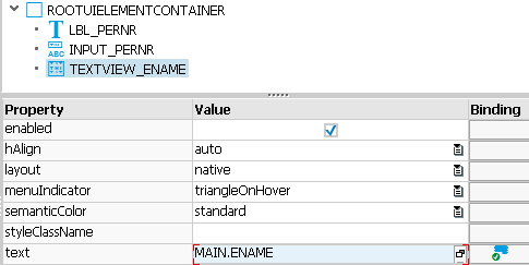 Next, create binding for the TEXTVIEW_ENAME and bind it to the MAIN.ENAME (Figure 18).