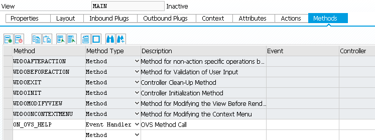 Most importantly, specify the event that triggers this handler. In my example, link this to the OVS event. Specify the name of the method and select Event Handler as the method type. Press F4 within the Column event. From the input help that appears, select the event OVS (the first line), as shown in Figure 20.