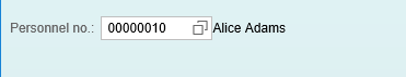 If you need to select a name using Exact Selection, omit the asterisk. After you select a given name row, the corresponding personnel number and name fields defined in the MAIN view are populated with the selection (Figure 24).