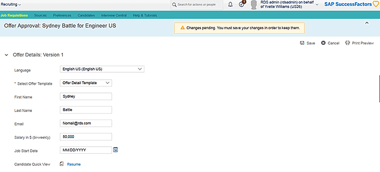 Manage Pending Hires: Transitioning from a Candidate in Recruiting Management to an Employee in Employee Central