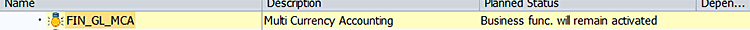 Figure 1. To activate business function FIN_GL_MCA, select it and click the activate icon (not shown in