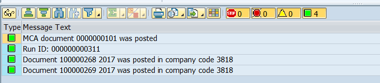 Upon posting, the system generates MCA documents and financial accounting documents for respective currencies as shown in