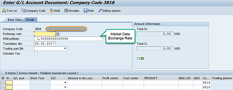 This market data exchange rate can also be used in regular G/L accounting document posting (FB50) as shown in