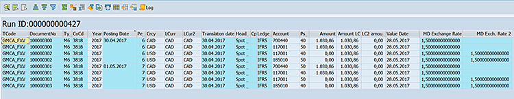 Double-click the spot position valuation items to display the individual accounting document postings as shown in