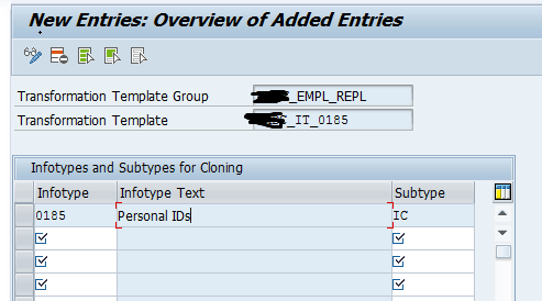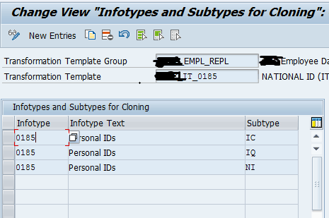The next step is to clone the transformation templates you created previously. The purpose of this step is to specify that the same mapping logic be used for all the following subtypes. It means the field mapping that you define for a cloning infotype in the Primary Mapping (