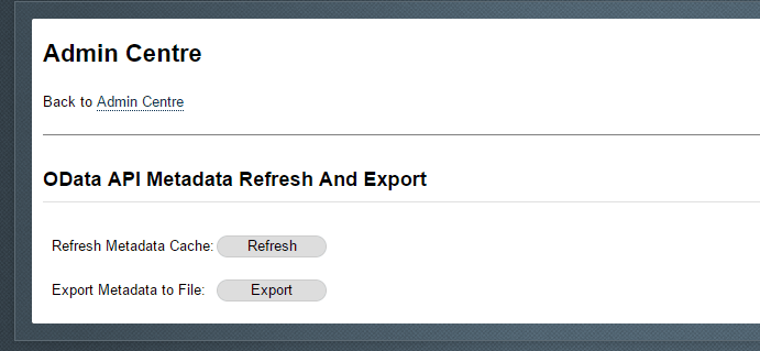 Figure 22. In the Tool Search field enter OData API Metadata Refresh and Export and the screen in
