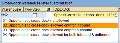 for inbound, which enables inbound deliveries to be cross-docked for matching outbound deliveries.