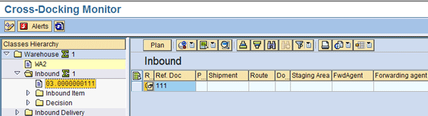 the cross-docking monitor to evaluate inbound and outbound deliveries — sometimes referred to as planning and