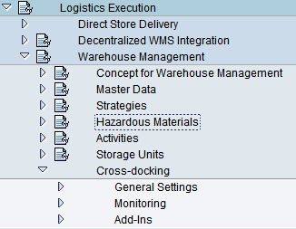 Cross-docking is a part of Warehouse Management in Logistics Execution. Several settings are available