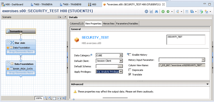Figure 2). This would only make sense if every user is allowed to see all the data contained in the view as long as they had access to the underlying tables. If this is not the case, you must select one of the analytic privilege options (e.g., classical or SQL in SPS10) that you want to deploy to hide access to the view in general or, as an option, which rows of data will be viewable. In