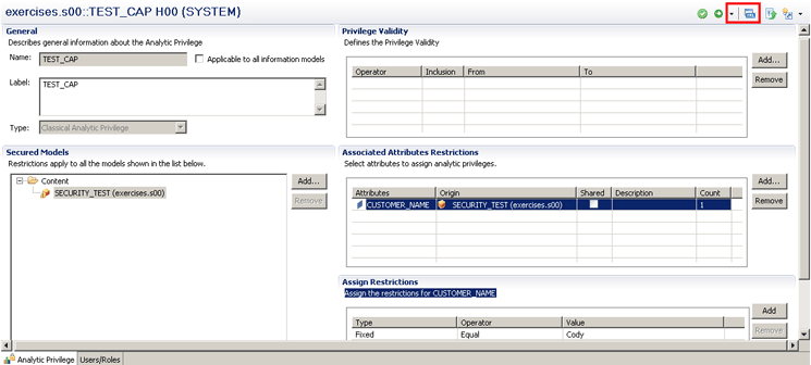 In the first article in this series I discuss how to create objects in the content repository or directly in the database catalog. In the case of analytic privileges, excluding the dynamic type (which I address later in this article), SAP pushes you to create analytic privileges as transportable repository or design-time objects that must be deployed or activated. That is a good thing, as privileges should be tested in a dedicated test system before being moved to and deployed in production.
