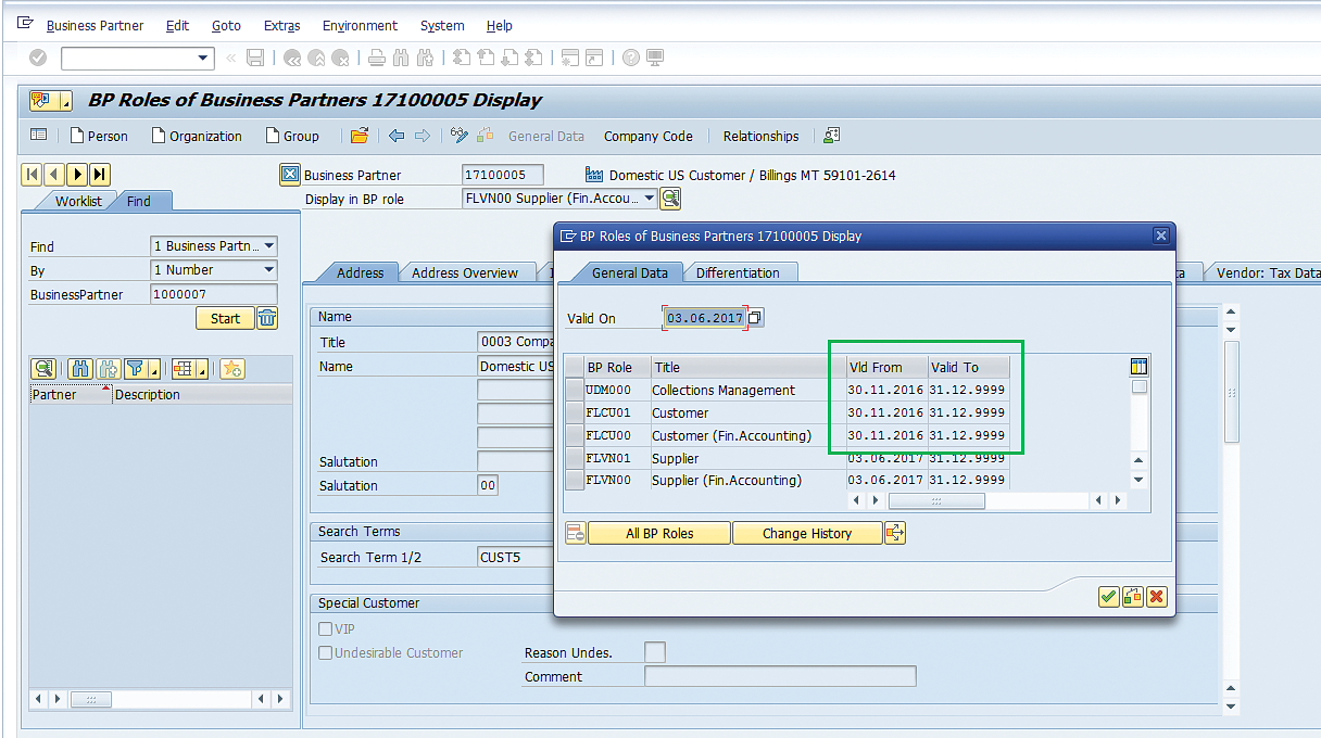A business partner’s roles with a validity range