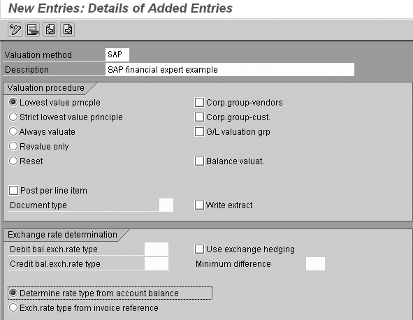- How do you valuate? Your SAP system provides various methods, such as lowest value, in which case only potential expenses are registered. This ensures that a statement never contains exchange risks while not including exchange gains that in the end might not be realized.