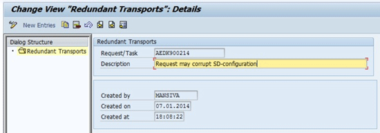 The exclusion of a complete transport from further deployment when, for example, you are creating a mass import list, runs fully automated within Transport Center without the risk of human error. You may want to document transport requests as redundant (Figure 16) and irrelevant from further deployment in case the transport content contains erroneous objects or configuration. With TRACE installed you can access redundant transports using menu path /ABEX/TRACE > Customizing > Dump Prediction > Redundant Requests.