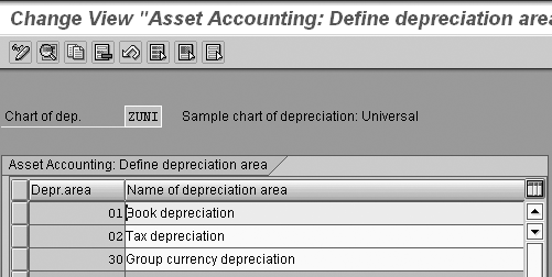 For the purposes of this article, I set up a test company that manages a EUR local currency and USD group currency. The company manages three depreciation areas: Book depreciation, Tax depreciation, and Group currency depreciation (Figure 1).