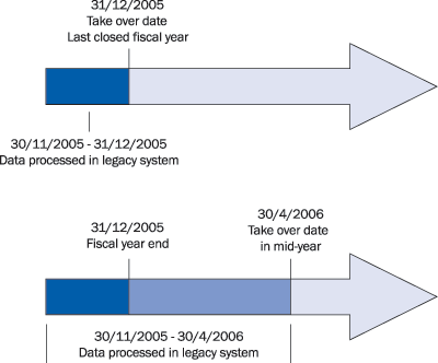 In this option, in addition to the data converted in the last closed fiscal year, you need to convert depreciation posted from the beginning of the current fiscal year up to the take- over date and any additional asset transactions during this period, such as acquisitions and retirements. This is required for the asset values to reflect the actual values on the books at the take-over date.
