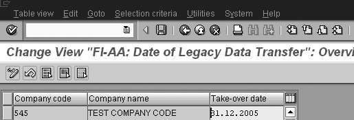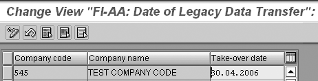 For take-over during the fiscal year, you make two settings. First set the take-over date as displayed in Figure 6. In this example, you set the take-over date during the year to April 30, 2006. To set this, follow IMG menu path Financial Accounting>Asset Accounting>Asset Data Transfer> Parameters for Data Transfer>Date Specifications>Specify Transfer Date/Last Closed Fiscal Year.