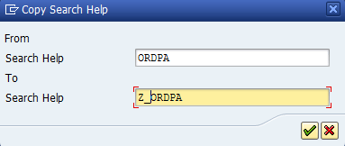 Next, copy the search help ORDPA to Z_ORDPA by using transaction SE11. Select the Search help radio button, enter ORDPA in the field next to the radio button, and click the copy icon (Figure 10).