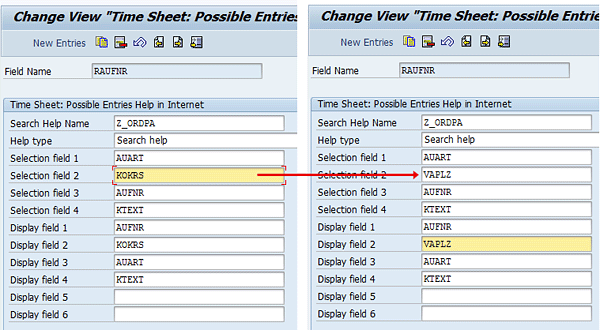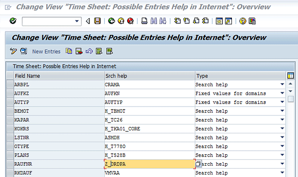 To show how some fields in the CATS and the ESS timesheet can use a search help, I use the field RAUFNR (receiver order) for my example. The change to the search help is applicable to other fields as well. These tips are valid for both Java-based and ABAP Web Dynpro applications.