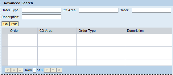 To add a new search help, the first step is to start your CATS or ESS timesheet and click an empty field in the Rec. Order column. A look-up icon appears next to the field (Figure 1). After you click the look-up icon, the Advanced Search screen (Figure 2) appears where users can enter some values to look for a particular order (i.e., the type of order and the financial area under which the order falls).