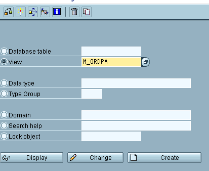 First, copy the selection method M_ORDPA to selection method Z_ORDPA by using transaction code SE11. Enter Type M_ORDPA in the View field, select the View radio button, and click the copy icon