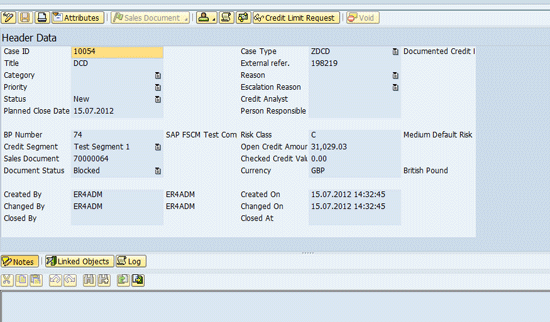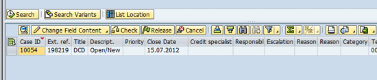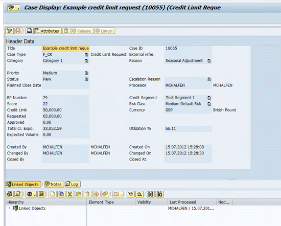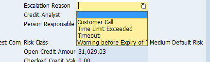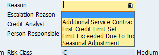 The following examples are based on a scenario in which there is no workflow; in fact, none of the main fields has been derived to show the potential of how you can customize your solution to meet your individual requirements. For example, the collections specialist of the customer is defaulted into the Credit Specialist field — or the reason of the credit block — could be mapped to the reason code of the DCD.
