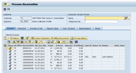 Within the DCD, there are some useful icons (see the icons at the top of the screen shown in Figure 13). For example, a dispute holds up a payment, leading to the credit exposure being high. SAP Collections Management may inform the user that the customer has a broken promise to pay that indicates that there is a potential credit risk with the customer.