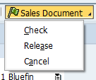 Users can also click a new Sales Document button (Figure 16) to check, release, or cancel a sales document. By choosing Check from this list of options in the drop-down menu, users can check the sales order to see if the criteria that blocked the sales order have changed. For example, a payment might be received, reducing the credit exposure. Consequently, the sales order does not need to be blocked any more.
