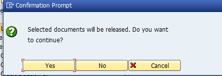Users also have the option to release the sales order by clicking the Release button that is found in the DCD Search screen (Figure 8). This action releases the credit block and enables the sales order to be processed through delivery and billing. The user receives a prompt to confirm that the sales document is to be released. By clicking the Yes button, the sales document is released (Figure 18).