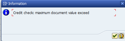 When the AR team tries to process the sales order, the SAP system sends a message notifying the user that the credit check has failed owing to the value of the document being greater than the permitted value (Figure 2).