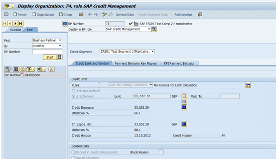 The sales order entry team cannot process the sales order any further until the credit block has been removed. If the user ignores or misses the system message, the sales order entry team might look at the Credit Management profile within the business partner record to receive a better overview of the account (Figure 3). The Credit Segment view of the customer account enables the relevant user to view the credit limit and the credit exposure. It also enables the credit control team to drill down to document level information if required.
