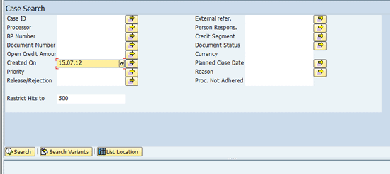 In the next screen that appears (Figure 7), a user searched for a DCD against the date (the Created On field). However, users can also search by the customer number (business partner [BP] Number), the Credit Segment, or the Document Status – new, in progress, or escalated.