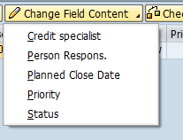 The user can drill directly into the DCD to see more information. However, the user can use a few icons to speed up the processing of the case. For example, by clicking the Change Field Content button, the user can update the value of the DCD for the fields defined in the drop-down list of options (Figure 9). The user might want to assign the credit specialist (to process the DCD) or change the person responsible.