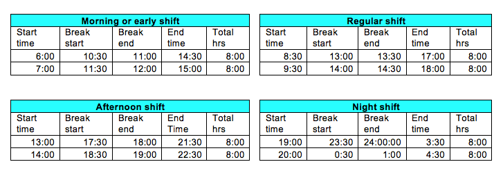 Sample shifts and their timings