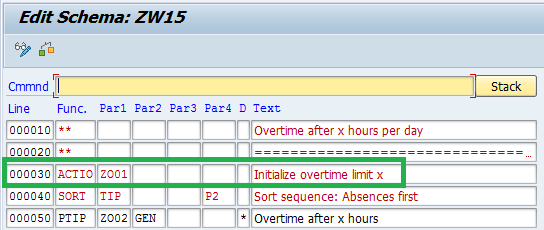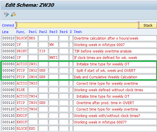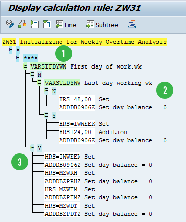 Figure 2). The second subschema ZW30 (explained in detail in the section “Calculate Daily and Weekly Overtime Hours”) consists of PCRs ZW31, ZW32, and ZW06 (these three PCRs replace the standard PCRs TW31, TW32, and TW06, respectively) to calculate overtime (explained in