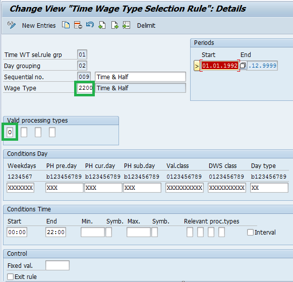 Entry in table T510S to generate wage type 2200 for processing type O