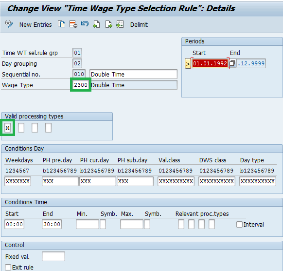 32 Entry in table T510S to generate wage type 2300 for processing type M