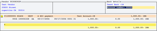 The invoice posted through FB60 makes a CR entry against the vendor and a DR entry against the offsetting expense G/L account. Figure 5 shows the vendor line item containing the bank type information. At the time of the payment run, the system uses bank account 22222 because I used bank type INR in this invoice (Table 1).