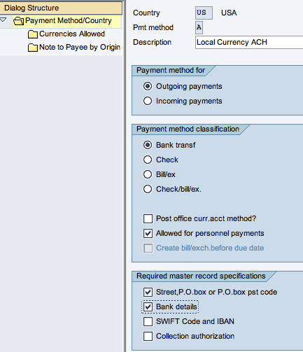 1. Check the Bank details check box (Figure 2) in the payment method as defined at the country level in transaction FBZP. This ensures the selection of the bank details from the vendor master at the time of the automatic payment run. If you don’t do this, the system does not copy the bank details into the payment IDoc that is created as a result of the automated payment run (transaction F110).