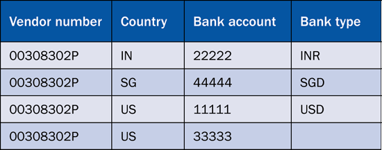 A vendor may have multiple bank accounts and may want you to make payments to its accounts on the basis of certain rules. The rule-based selection of the vendor’s bank account may depend on a simple rule based on company code currency and bank account currency — for example, if a vendor supplies materials to multiple company codes. Alternatively, it may be a complex rule related to the nature and currency of payment (e.g., cross-border transfer, domestic funds transfer, and the ability of the vendor’s bank account to receive such payment).