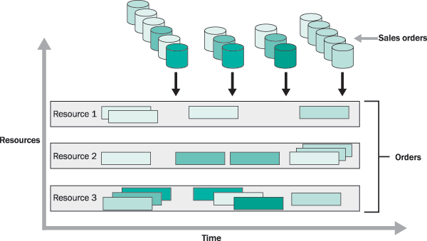 can use scheduling heuristics to sequence the orders on the resources. After you have the infinite plan, the scheduling