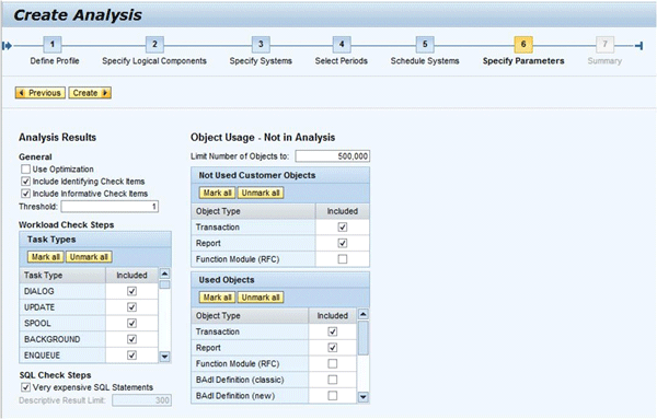 - Used Objects — Allows you to include usage statistics for all transactions, reports, RFCs, and Business Add-Ins with activity that are not assigned in the RBPD content.