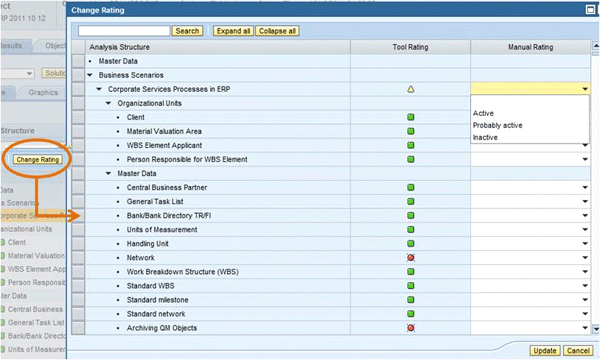 The result of the analysis is that the structure is now reflective of the usage of scenarios, organizational units, master data, business processes, and process steps based on an automated evaluation of the RBPD content and criteria (Figure 16).