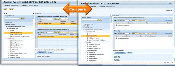 This time, select your SAP Solution Manager project as the source for the analysis project. You can restrict the analysis to In Scope structure elements and create the project. Once the new SDA Analysis project is available, compare the check items and check steps to the original RBPD project that was created by importing content (Figure 26).